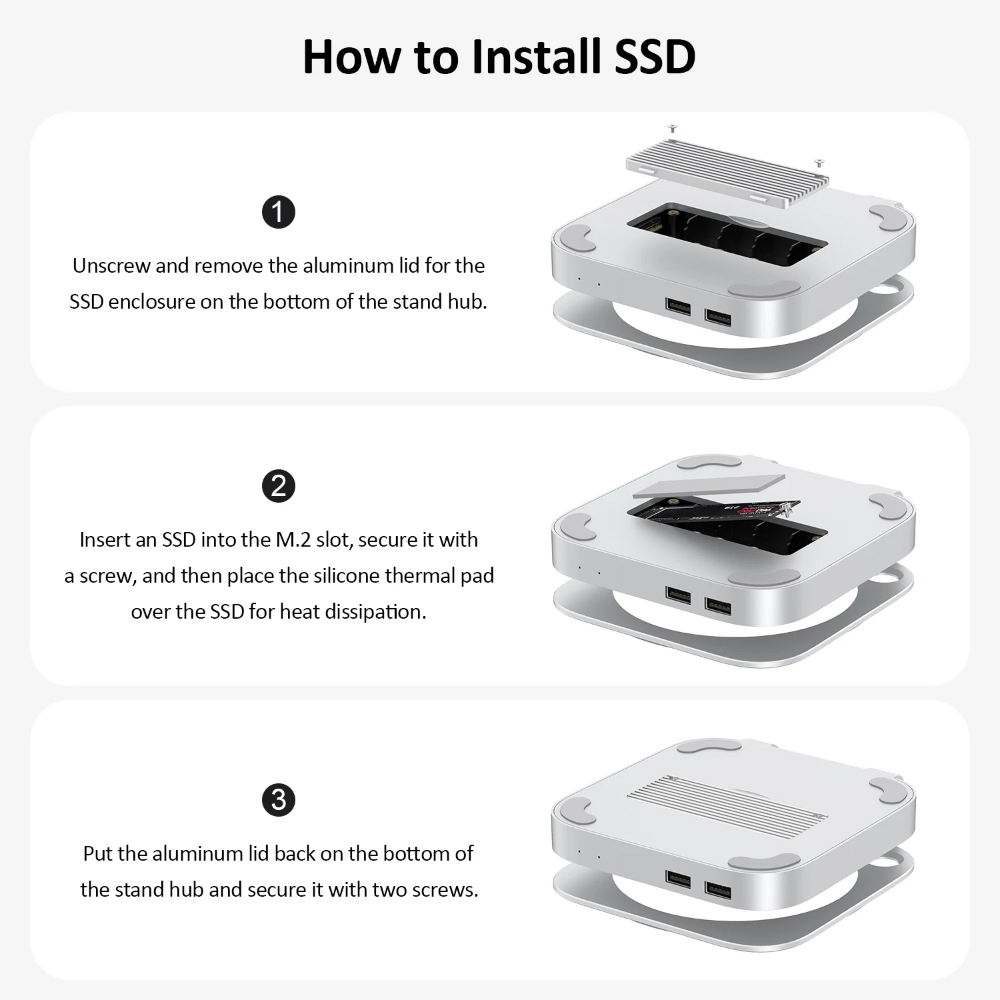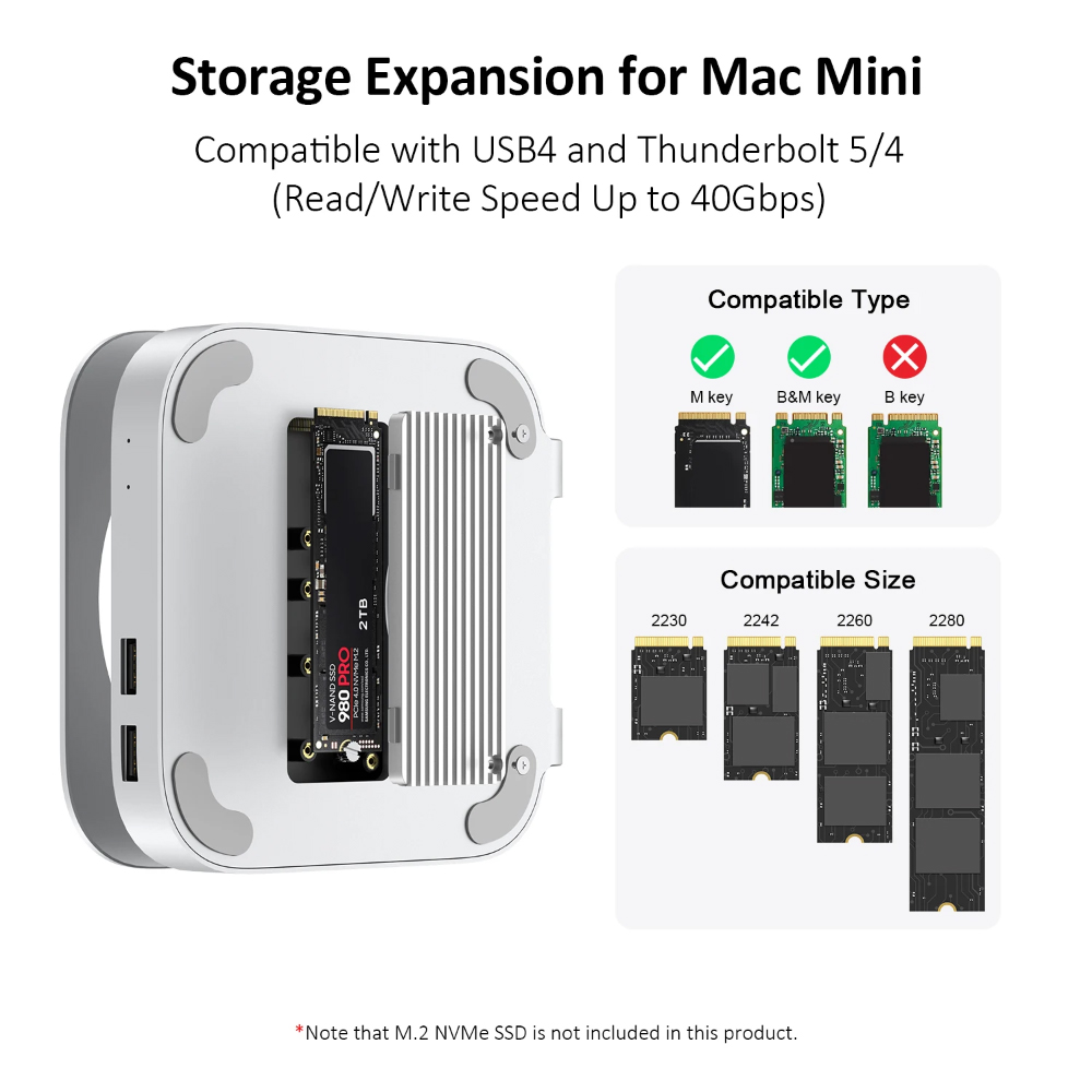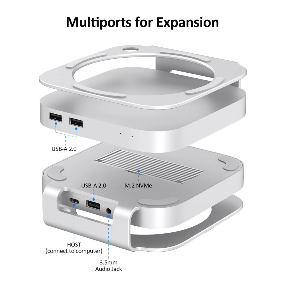 Aluminum Stand Hub with SSD Enclosure for Mac Mini 2024 M4/M4 Pro