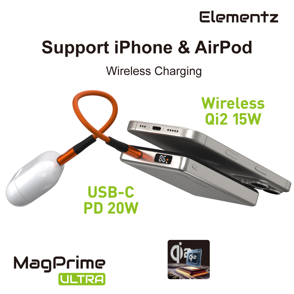 | Qi2 Official Certified (WPC QI23951) 15W Wireless Power Bank |