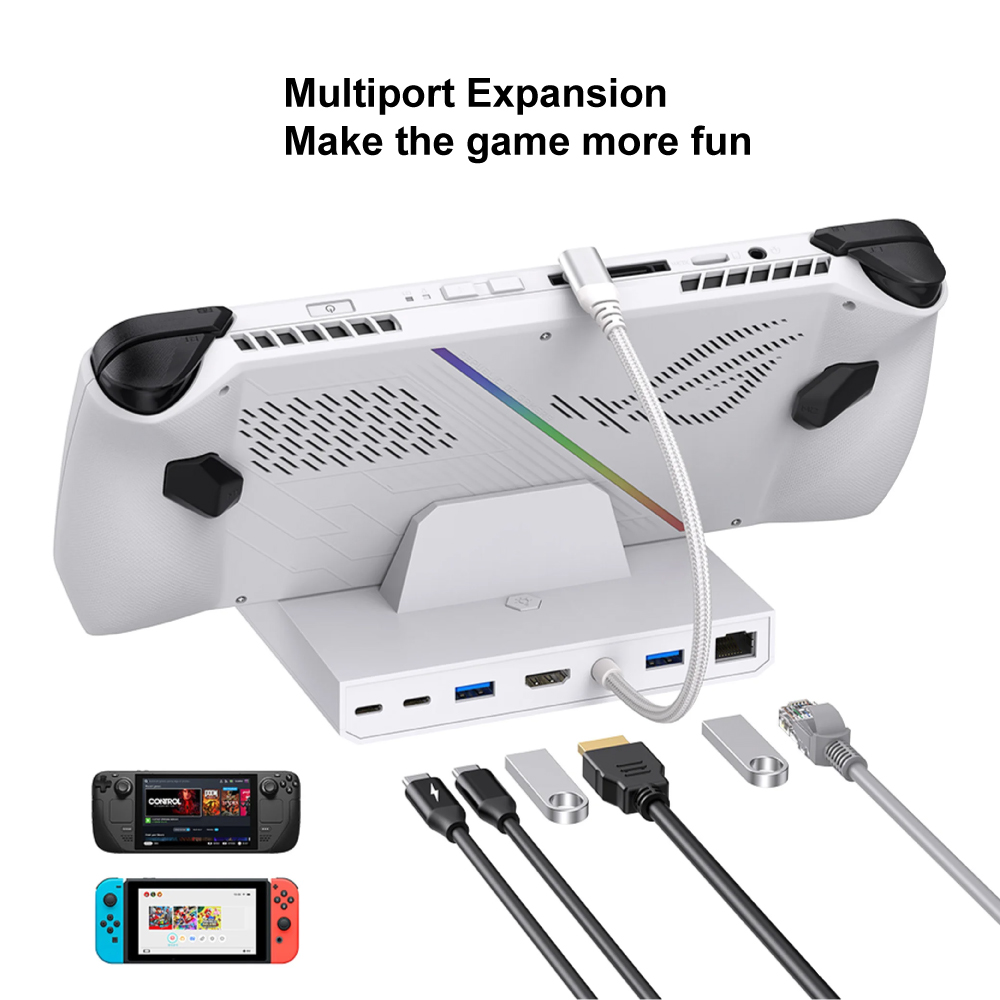 ROG Ally/Steam Deck/Switch/OLED Dock 6 in 1 Universal Docking Station With 4K HDMI 2.5G RJ45 100W PD RGB Light USB C Hub |