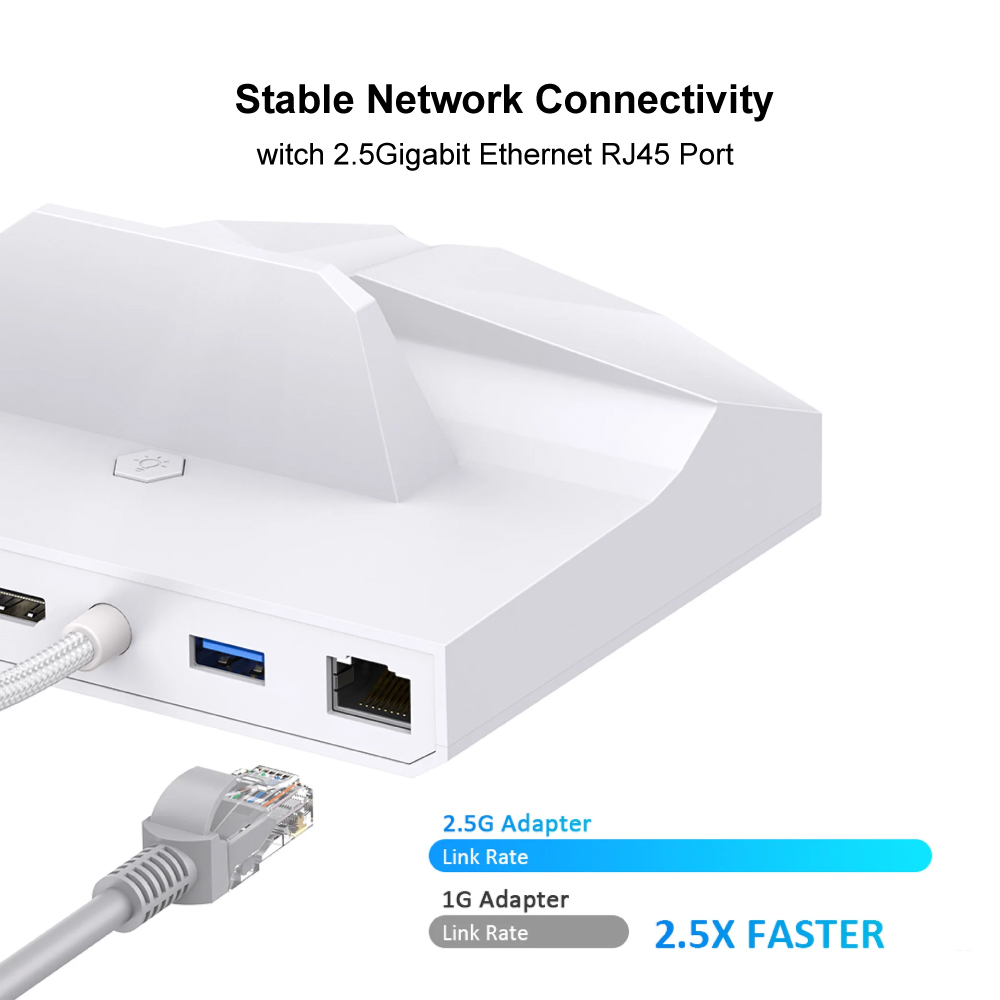 輸出接口: | USB-C x 1 (10Gbps) | USB-A 3.2 x 2 (10Gbps Max)| USB-C PD (100W)| HDMI (4K) | 2.5 Gigabit RJ45 |
