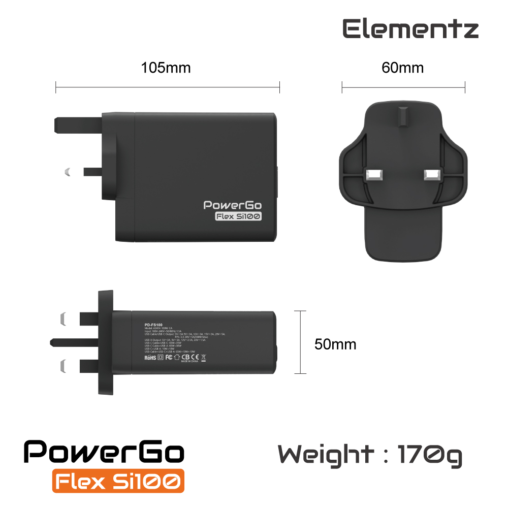 | 100W 帶線快速充電器 ,採用GaN技術,比傳統充電器有更高的功率 |