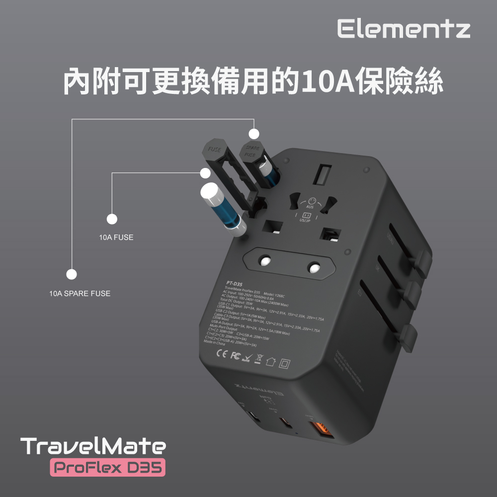 | 全球通用、廣泛相容性, 內附可更換備用的10A保險絲。 |