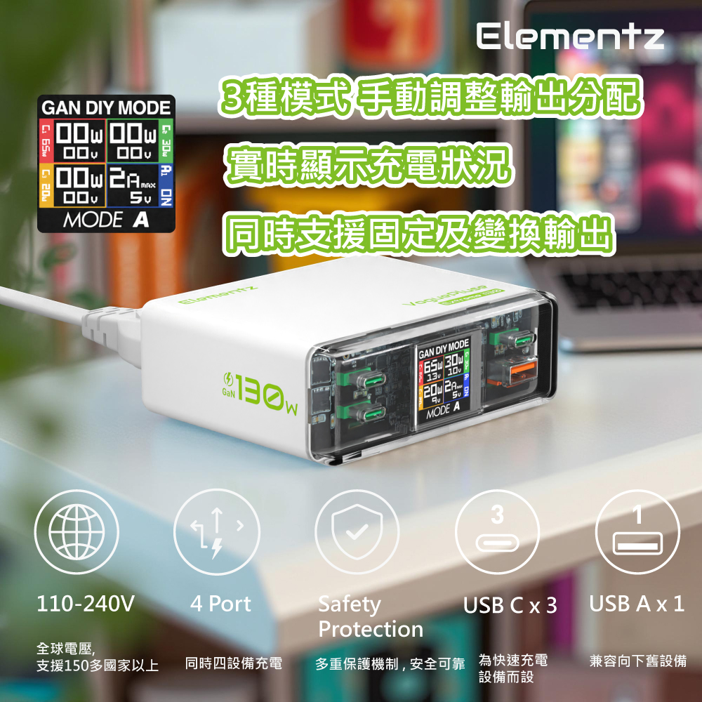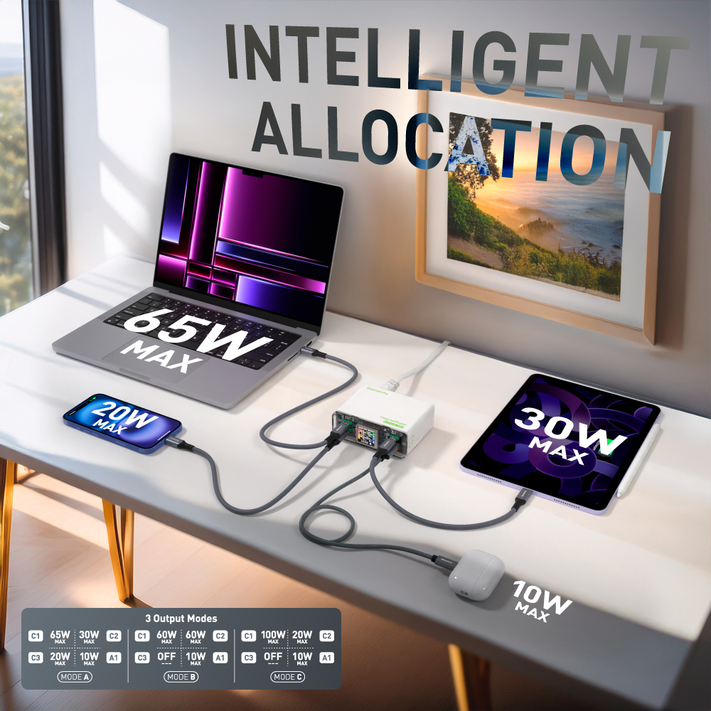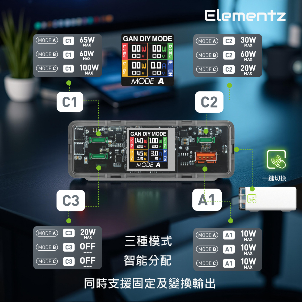 | 3C + 1A 4Port GaN 智能自訂分流技術, 三種模式選擇, 手動調整輸出接口 |